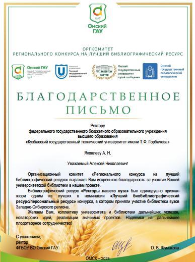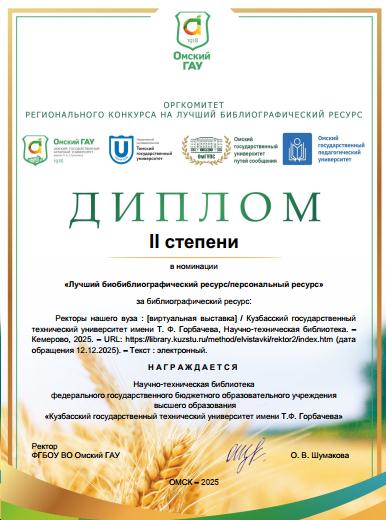 В 2025 году Научно-техническая библиотека вуза приняла участие в «Региональном конкурсе на лучший библиографический ресурс», где виртуальная выставка «Ректоры нашего вуза» завоевала признание жюри как один из лучших биобиблиографических ресурсов.